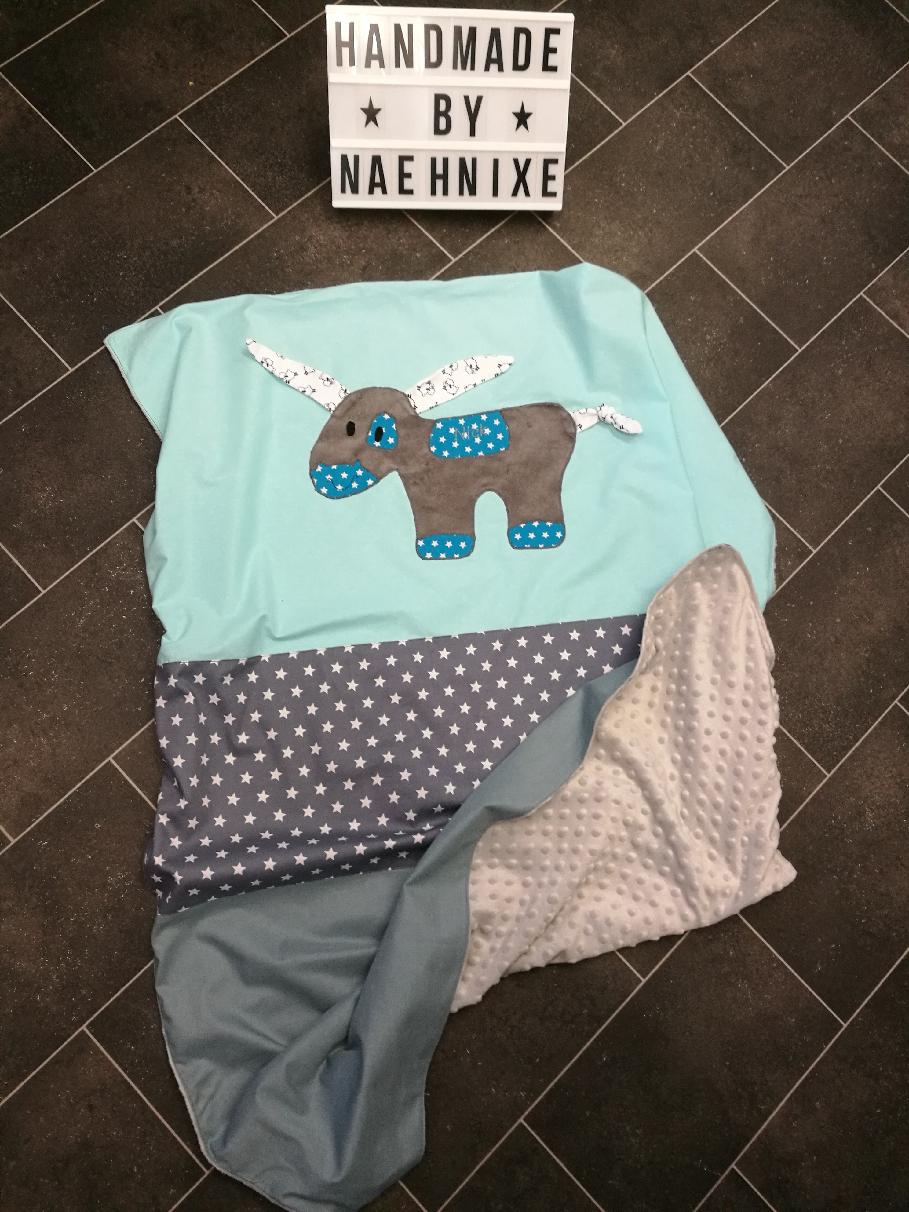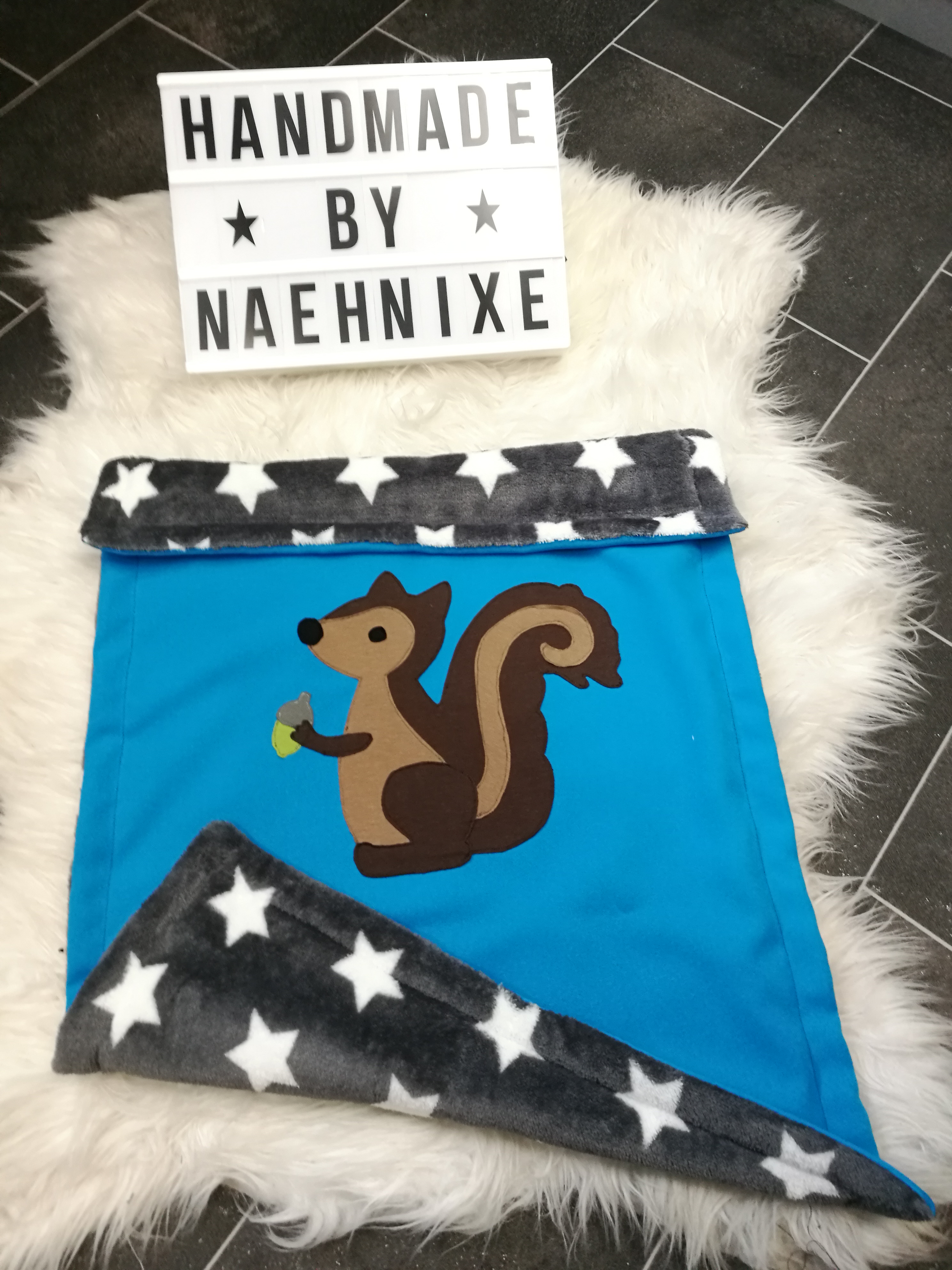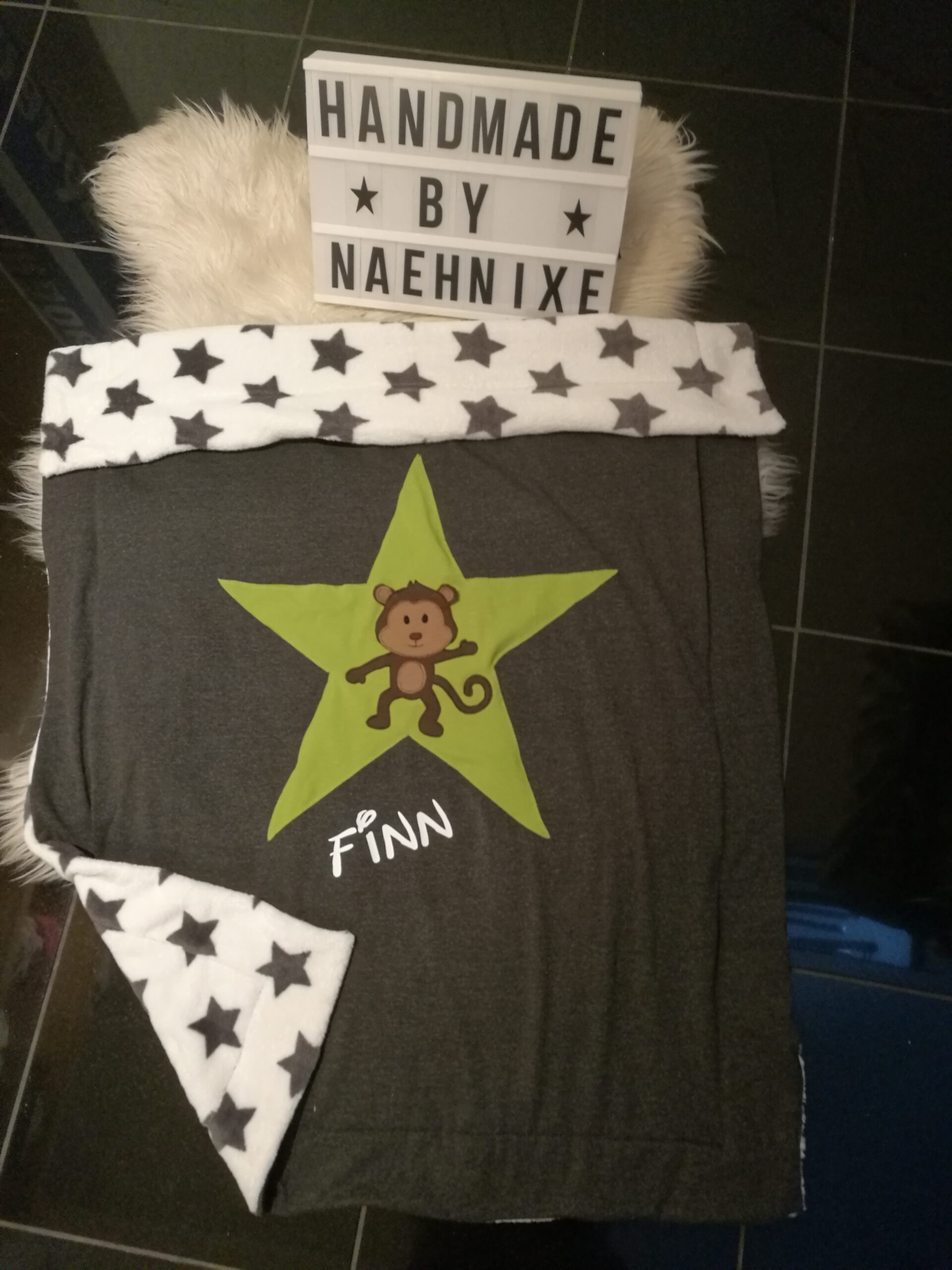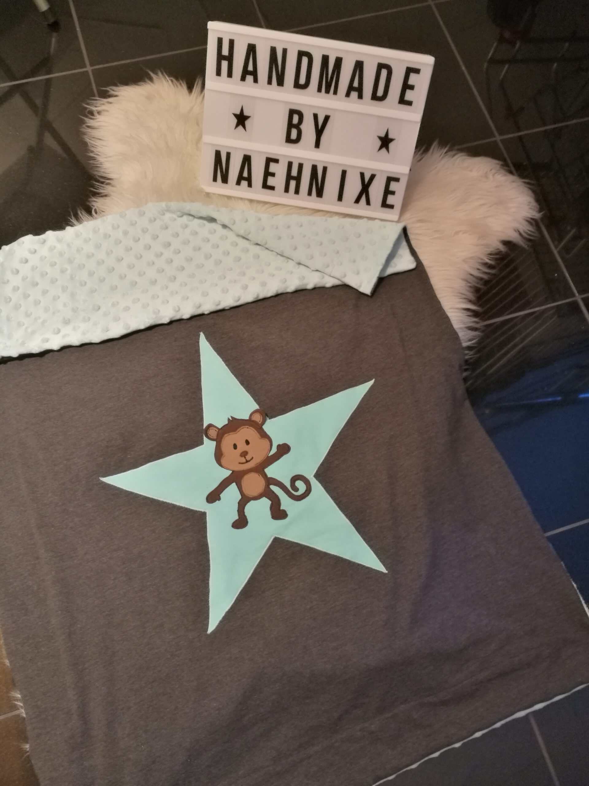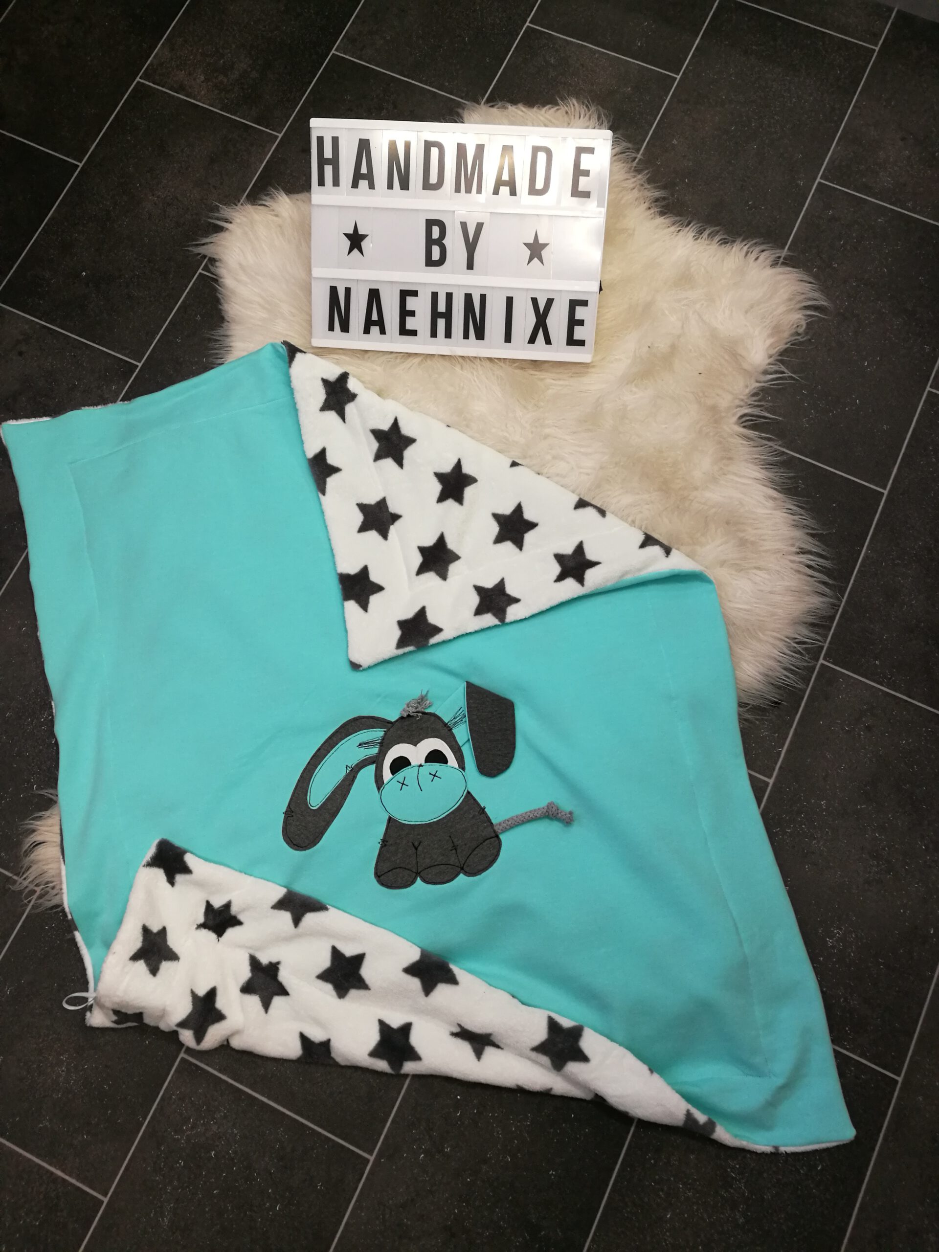Kinderwagen- / Kuscheldecken mit Riesenapplikation, Rückseite super kuschelig ab 30€